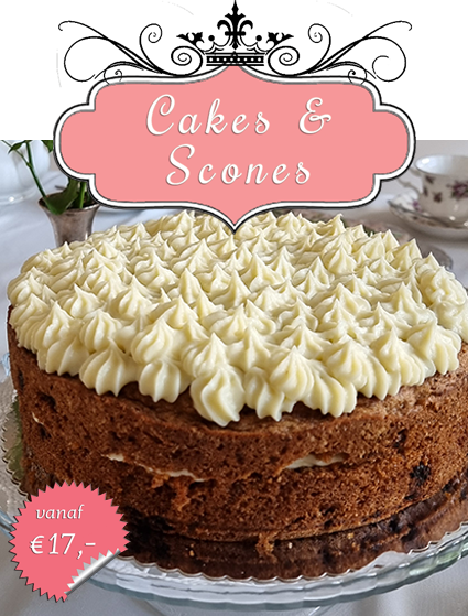 Breng de sfeer van een Engelse tearoom in huis. Geniet van onze vers gebakken cakes en scones – ambachtelijk bereid, rijk van smaak en ideaal om thuis te delen of zelf van te genieten. Cakes zijn geschikt voor 12-14 personen.