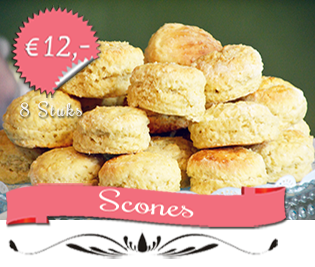 Een luchtig cake/broodje, dat wordt genuttigd met Clotted cream en Jam. (Verpakking per 8 stuks) (Clotted cream: +€4,50)