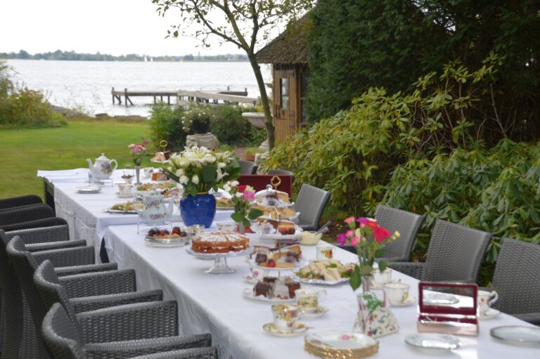 Bij Britannia Afternoon Teas leveren wij de traditionele Engelse Afternoon Tea – waar elegantie, smaak en gastvrijheid samenkomen in een authentieke beleving vol charme. Als gespecialiseerd cateringbedrijf brengen wij de sfeer van een echte Engelse middag tot leven: het zachte klinken van porselein, de geur van versgebakken scones en de verfijnde smaken van onze huisgemaakte cakes, sandwiches en thee. Geniet van de charme van onze compleet verzorgde Afternoon Tea arrangementen, inclusief porseleinen servies, prachtig geserveerd op uw locatie. Ontdek de verleiding van onze luxe Afternoon Tea Box, gevuld met ambachtelijke lekkernijen, of proef onze verse Cakes & Scones. Alles is met zorg bereid, geïnspireerd door traditie en bedoeld om van een gewone middag iets bijzonders te maken. Want de mooiste herinneringen ontstaan bij een kop thee.